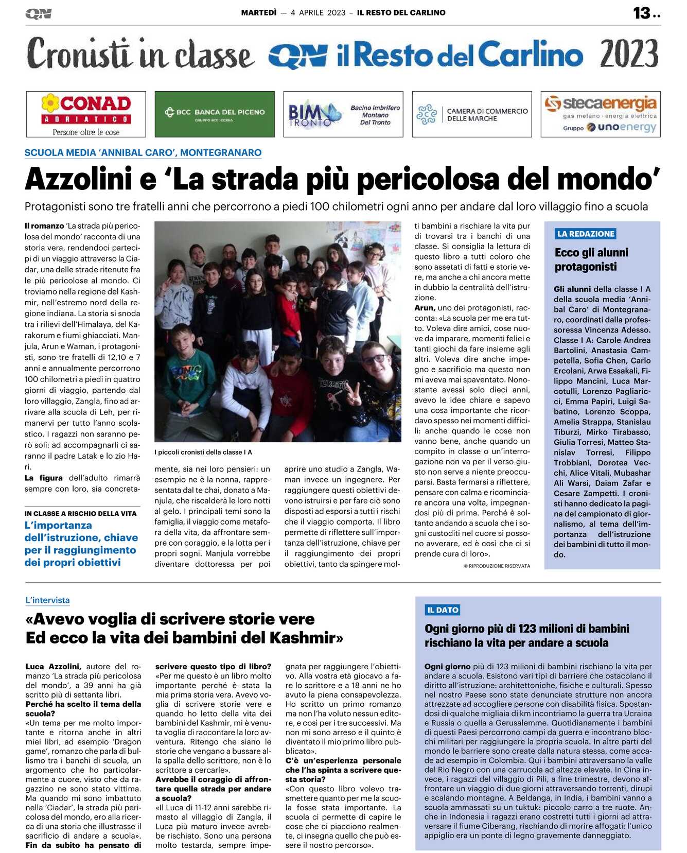 Avrebbe il coraggio di affrontare quella strada per andare a scuola? «Il Luca di 11-12 anni sarebbe rimasto al villaggio di Zangla, il Luca più maturo invece avrebbe rischiato. Sono una persona molto testarda, sempre impegnata per raggiungere l’obiettivo. Alla vostra età giocavo a fare lo scrittore e a 18 anni ne ho avuto la piena consapevolezza.