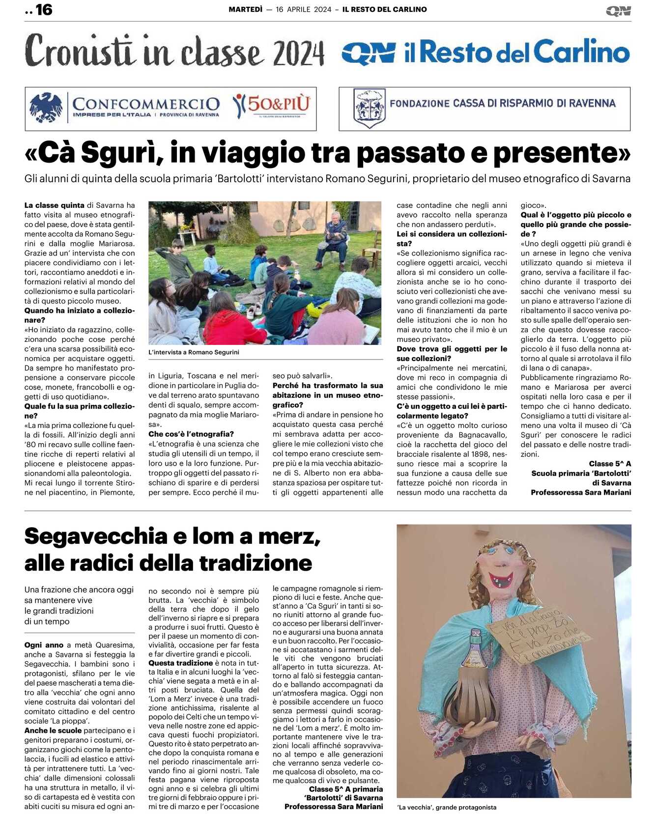 Gli alunni di quinta della scuola primaria ’Bartolotti’ intervistano Romano Segurini, proprietario del museo etnografico di Savarna