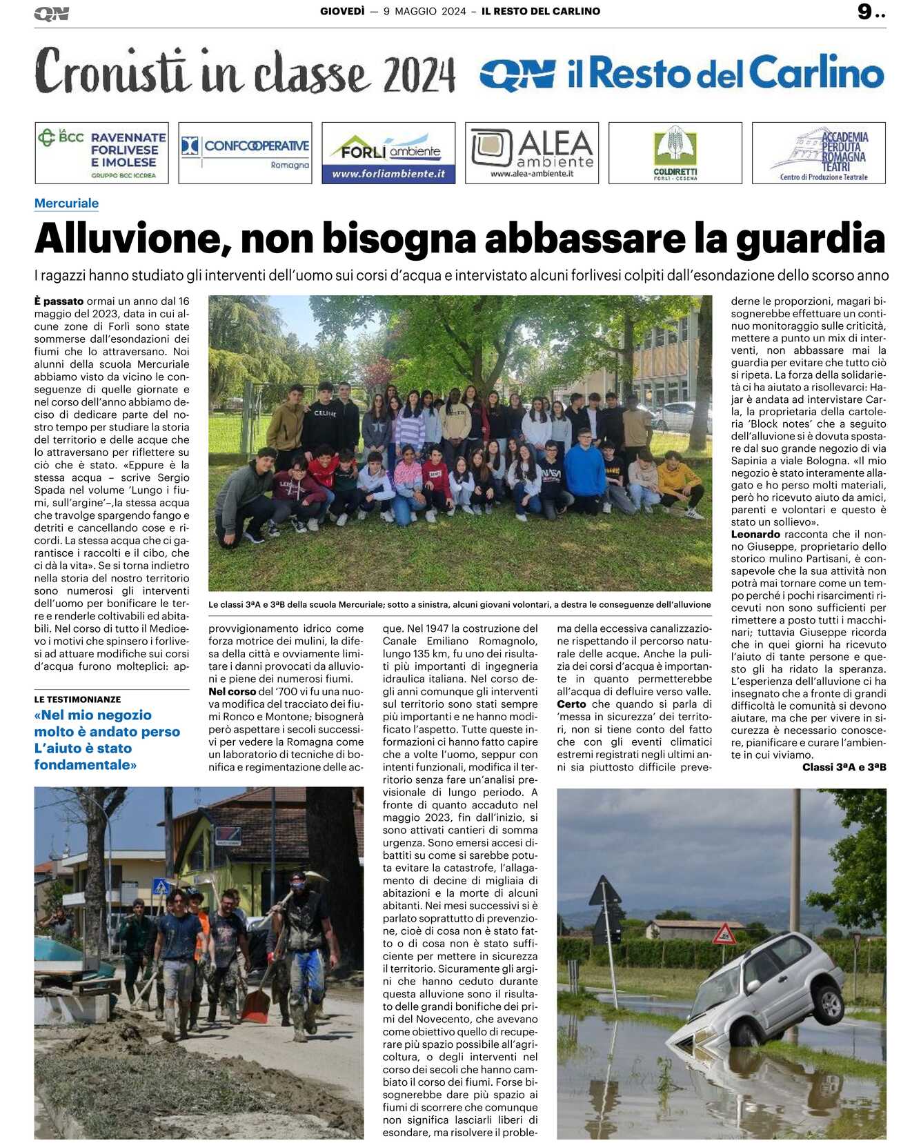 È passato ormai un anno dal 16 maggio del 2023, data in cui alcune zone di Forlì sono state sommerse dall’esondazioni dei fiumi che lo attraversano. Noi alunni della scuola Mercuriale abbiamo visto da vicino le conseguenze di quelle giornate e nel corso dell’anno abbiamo deciso di dedicare parte del nostro tempo per studiare la storia del territorio e delle acque che lo attraversano per riflettere su ciò che è stato. «Eppure è la stessa acqua – scrive Sergio Spada nel volume ’Lungo i fiumi, sull’argine’–,la stessa acqua che travolge spargendo fango e detriti e cancellando cose e ricordi. La stessa acqua che ci garantisce i raccolti e il cibo, che ci dà la vita». Se si torna indietro nella storia del nostro territorio sono numerosi gli interventi dell’uomo per bonificare le terre e renderle coltivabili ed abitabili. Nel corso di tutto il Medioevo i motivi che spinsero i forlivesi ad attuare modifiche sui corsi d’acqua furono molteplici: approvvigionamento idrico come forza motrice dei mulini, la difesa della città e ovviamente limitare i danni provocati da alluvioni e piene dei numerosi fiumi.