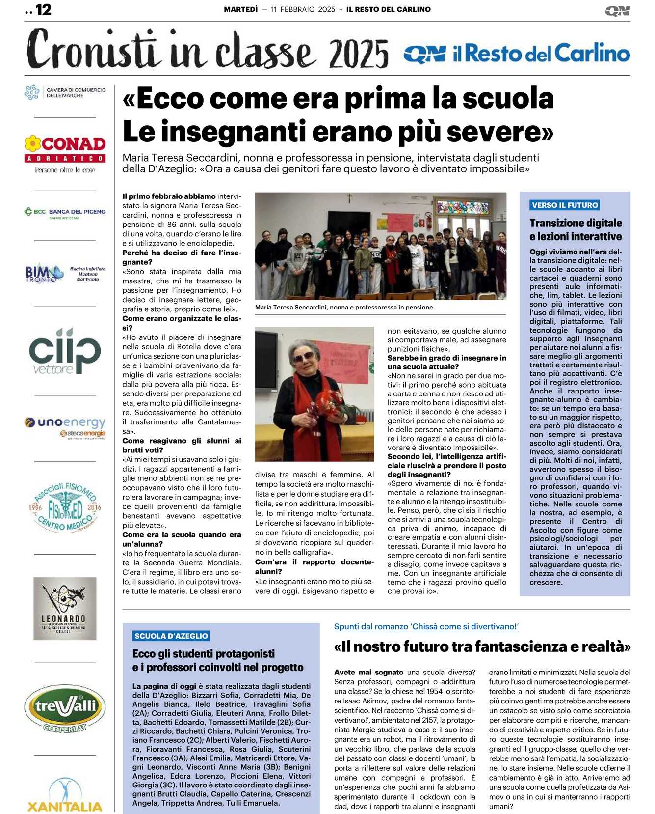 Il primo febbraio abbiamo intervistato la signora Maria Teresa Seccardini, nonna e professoressa in pensione di 86 anni, sulla scuola di una volta, quando c’erano le lire e si utilizzavano le enciclopedie.