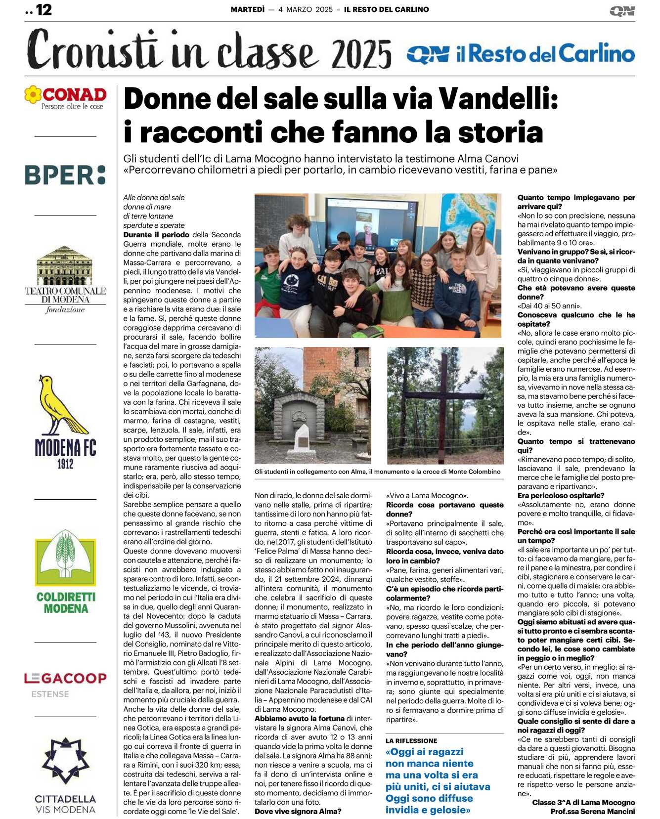 Gli studenti dell’Ic di Lama Mocogno hanno intervistato la testimone Alma Canovi «Percorrevano chilometri a piedi per portarlo, in cambio ricevevano vestiti, farina e pane»