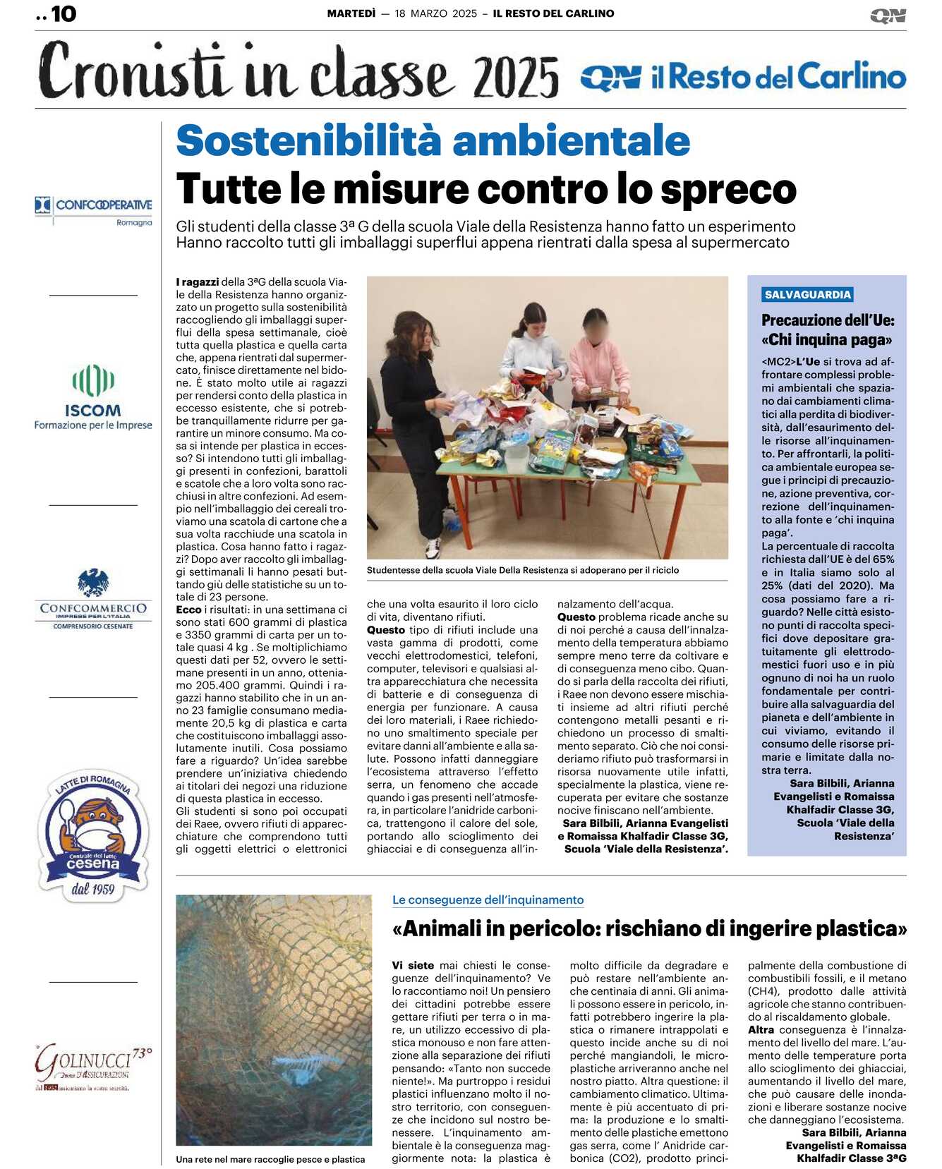 Gli studenti della classe 3ª G della scuola Viale della Resistenza hanno fatto un esperimento Hanno raccolto tutti gli imballaggi superflui appena rientrati dalla spesa al supermercato