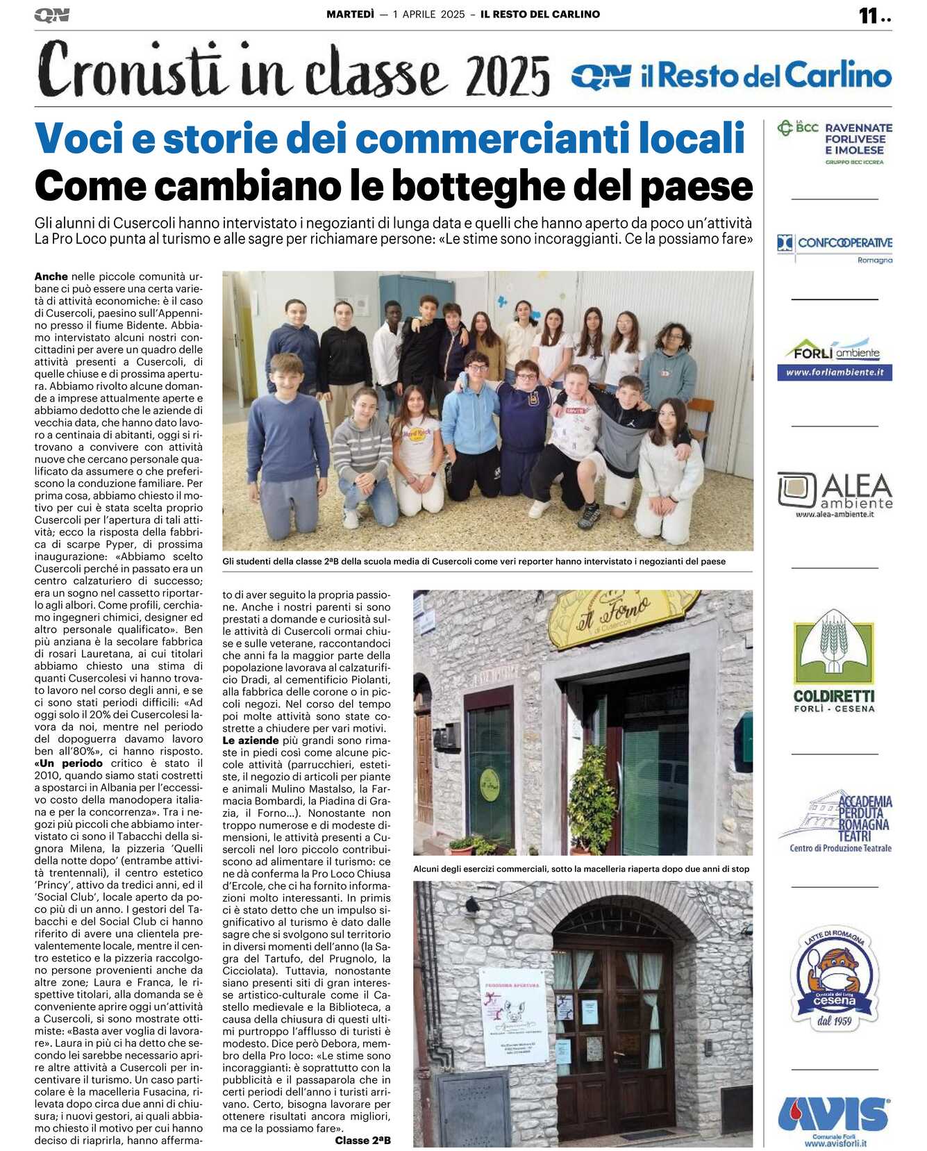 Anche nelle piccole comunità urbane ci può essere una certa varietà di attività economiche: è il caso di Cusercoli, paesino sull’Appennino presso il fiume Bidente. Abbiamo intervistato alcuni nostri concittadini per avere un quadro delle attività presenti a Cusercoli, di quelle chiuse e di prossima apertura. Abbiamo rivolto alcune domande a imprese attualmente aperte e abbiamo dedotto che le aziende di vecchia data, che hanno dato lavoro a centinaia di abitanti, oggi si ritrovano a convivere con attività nuove che cercano personale qualificato da assumere o che preferiscono la conduzione familiare. Per prima cosa, abbiamo chiesto il motivo per cui è stata scelta proprio Cusercoli per l’apertura di tali attività; ecco la risposta della fabbrica di scarpe Pyper, di prossima inaugurazione: «Abbiamo scelto Cusercoli perché in passato era un centro calzaturiero di successo; era un sogno nel cassetto riportarlo agli albori. Come profili, cerchiamo ingegneri chimici, designer ed altro personale qualificato». Ben più anziana è la secolare fabbrica di rosari Lauretana, ai cui titolari abbiamo chiesto una stima di quanti Cusercolesi vi hanno trovato lavoro nel corso degli anni, e se ci sono stati periodi difficili: «Ad oggi solo il 20% dei Cusercolesi lavora da noi, mentre nel periodo del dopoguerra davamo lavoro ben all’80%», ci hanno risposto.