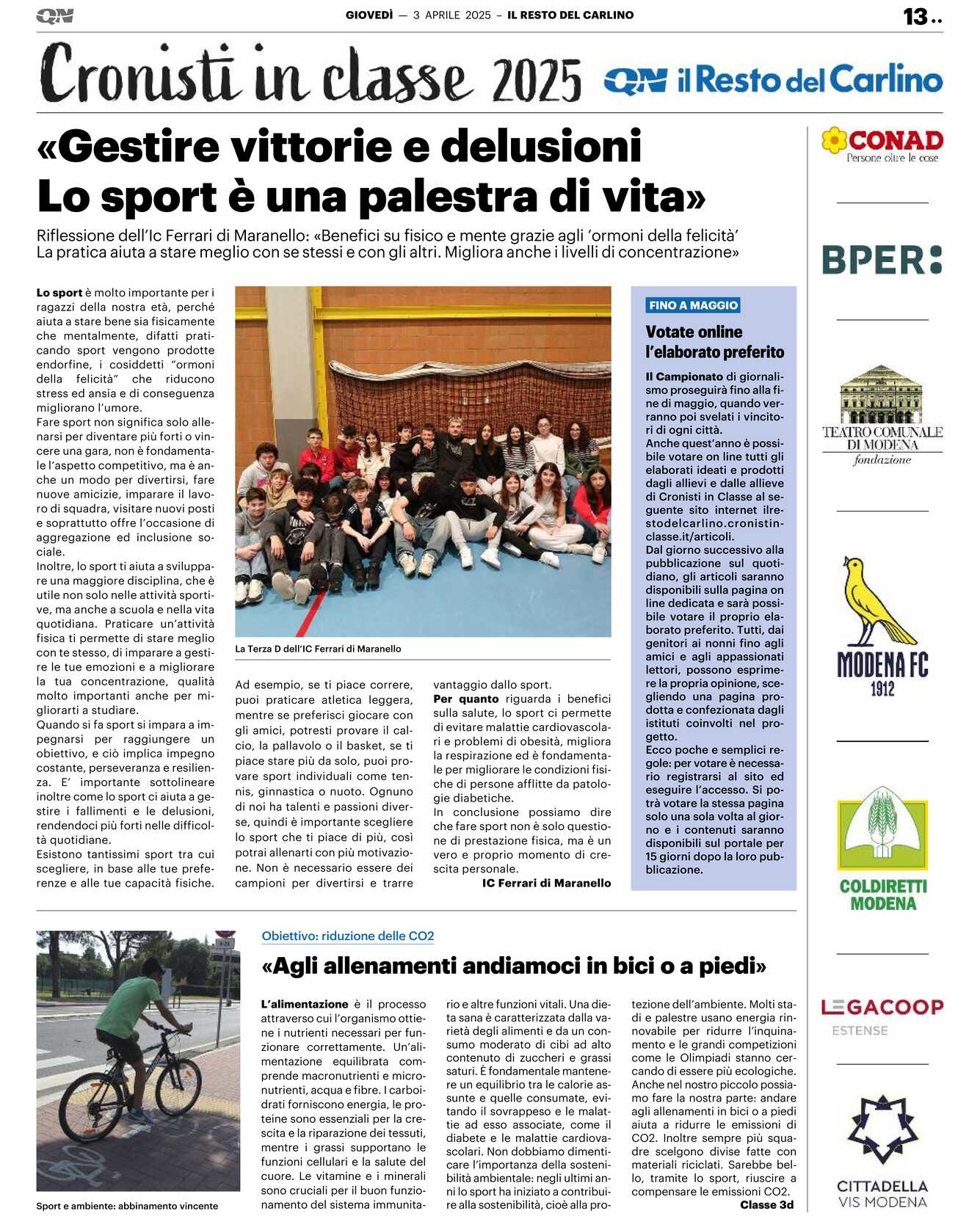 Lo sport è molto importante per i ragazzi della nostra età, perché aiuta a stare bene sia fisicamente che mentalmente, difatti praticando sport vengono prodotte endorfine, i cosiddetti “ormoni della felicità” che riducono stress ed ansia e di conseguenza migliorano l’umore.
