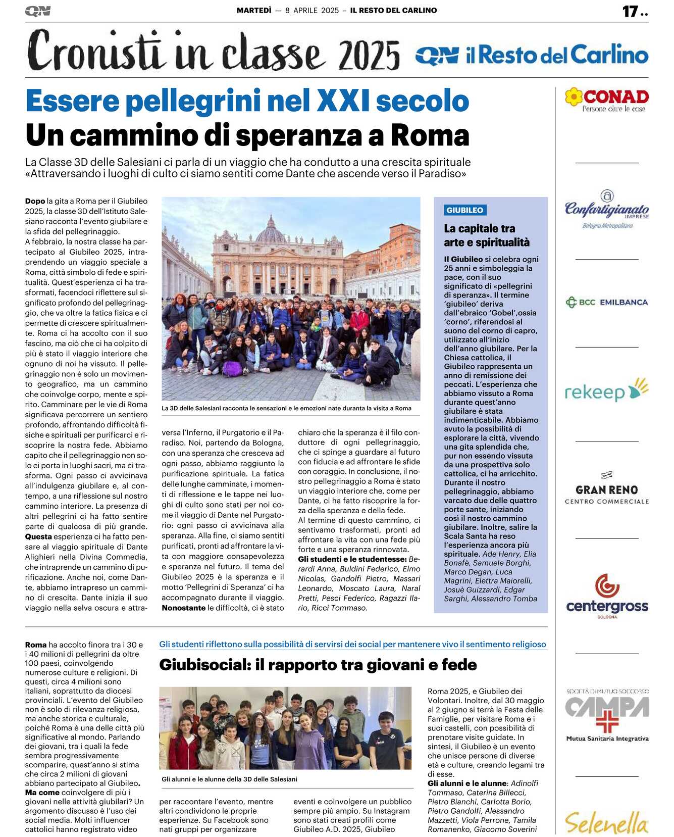 Dopo la gita a Roma per il Giubileo 2025, la classe 3D dell’Istituto Salesiano racconta l’evento giubilare e la sfida del pellegrinaggio.