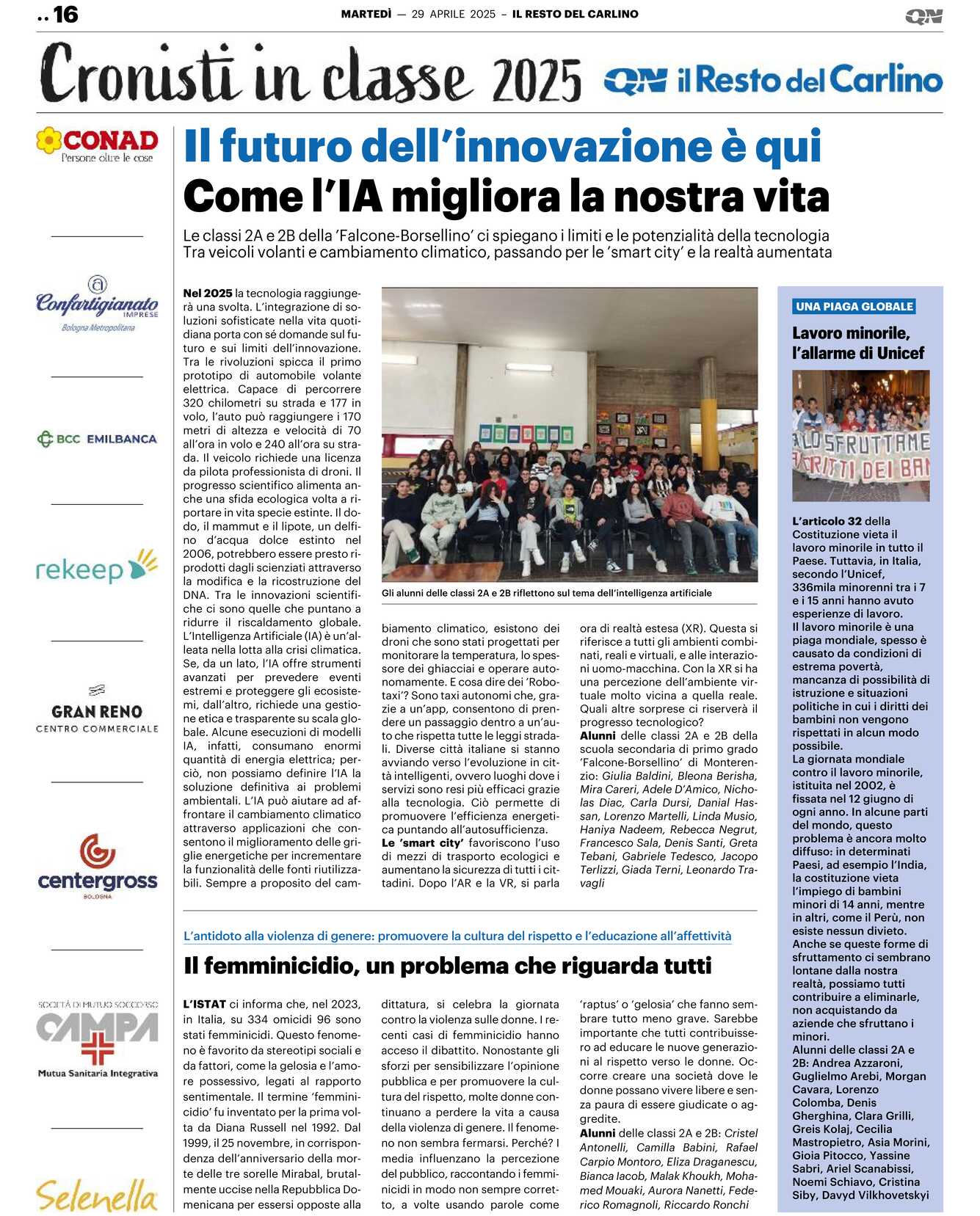 Alunni delle classi 2A e 2B della scuola secondaria di primo grado ’Falcone-Borsellino’ di Monterenzio: Giulia Baldini, Bleona Berisha, Mira Careri, Adele D’Amico, Nicholas Diac, Carla Dursi, Danial Hassan, Lorenzo Martelli, Linda Musio, Haniya Nadeem, Rebecca Negrut, Francesco Sala, Denis Santi, Greta Tebani, Gabriele Tedesco, Jacopo Terlizzi, Giada Terni, Leonardo Travagli