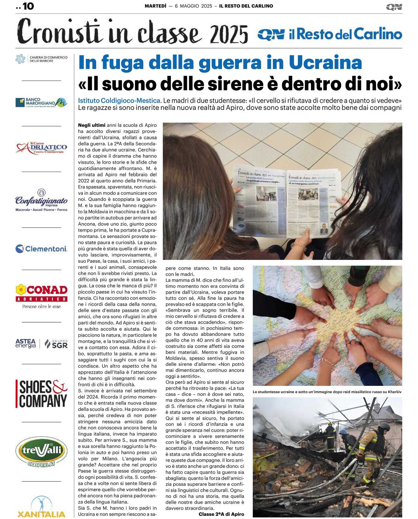 S. invece è arrivata nel settembre del 2024. Ricorda il primo momento che è entrata nella nuova classe della scuola di Apiro. Ha provato ansia, perché credeva di non poter stringere nessuna amicizia dato che non conosceva ancora bene la lingua italiana, invece ha imparato subito. Per arrivare S., sua mamma e sua sorella hanno raggiunto la Polonia in auto e poi hanno preso un volo per Milano. L’angoscia più grande? Accettare che nel proprio Paese la guerra stesse distruggendo ogni possibilità di vita. S. confessa che a volte non si sente libera di esprimere quello che vorrebbe perché ancora non ha piena padronanza della lingua italiana.