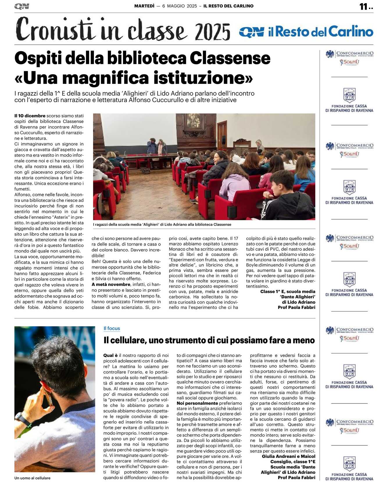 I ragazzi della 1^ E della scuola media ‘Alighieri’ di Lido Adriano parlano dell’incontro con l’esperto di narrazione e letteratura Alfonso Cuccurullo e di altre iniziative