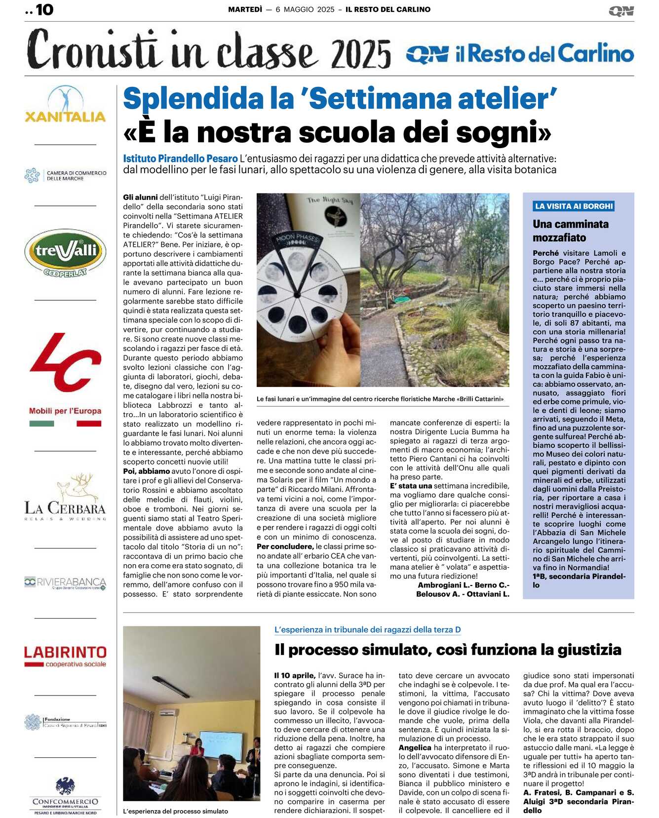 Durante questo periodo abbiamo svolto lezioni classiche con l’aggiunta di laboratori, giochi, debate, disegno dal vero, lezioni su come catalogare i libri nella nostra biblioteca Labbrozzi e tanto altro…In un laboratorio scientifico è stato realizzato un modellino riguardante le fasi lunari. Noi alunni lo abbiamo trovato molto divertente e interessante, perché abbiamo scoperto concetti nuovi e utili! Poi, abbiamo avuto l’onore di ospitare i prof e gli allievi del Conservatorio Rossini e abbiamo ascoltato delle melodie di flauti, violini, oboe e tromboni. Nei giorni seguenti siamo stati al Teatro Sperimentale dove abbiamo avuto la possibilità di assistere ad uno spettacolo dal titolo “Storia di un no”: raccontava di un primo bacio che non era come era stato sognato, di famiglie che non sono come le vorremmo, dell’amore confuso con il possesso. E’ stato sorprendente vedere rappresentato in pochi minuti un enorme tema: la violenza nelle relazioni, che ancora oggi accade e che non deve più succedere. Una mattina tutte le classi prime e seconde sono andate al cinema Solaris per il film “Un mondo a parte” di Riccardo Milani. Affrontava temi vicini a noi, come l’importanza di avere una scuola per la creazione di una società migliore e per rendere i ragazzi di oggi colti e con un minimo di conoscenza.