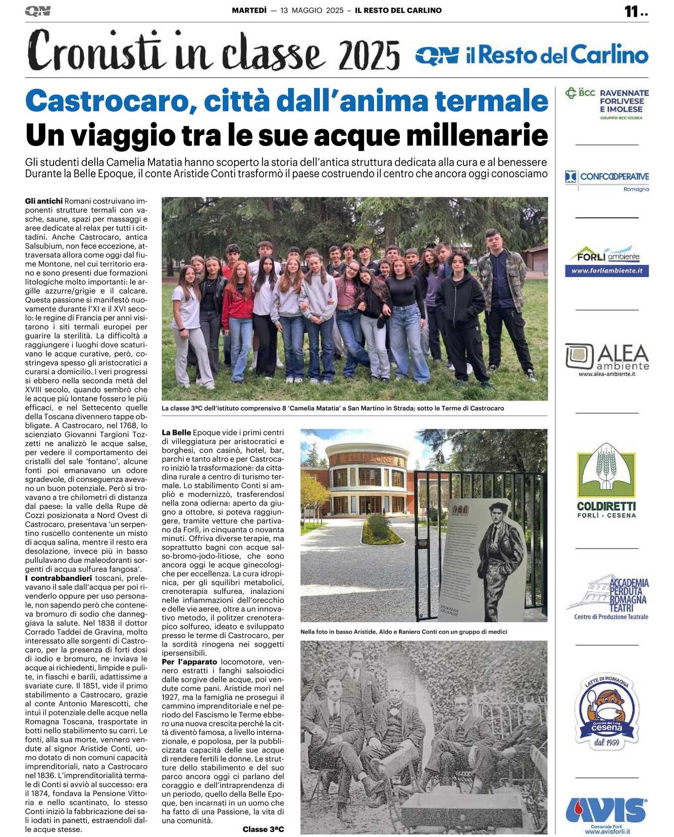 Gli studenti della Camelia Matatia hanno scoperto la storia dell’antica struttura dedicata alla cura e al benessere Durante la Belle Epoque, il conte Aristide Conti trasformò il paese costruendo il centro che ancora oggi conosciamo
