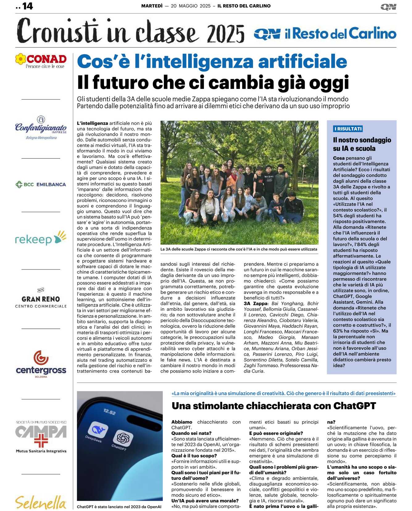 Gli studenti della 3A delle scuole medie Zappa spiegano come l’IA sta rivoluzionando il mondo Partendo dalle potenzialità fino ad arrivare ai dilemmi etici che derivano da un suo uso improprio