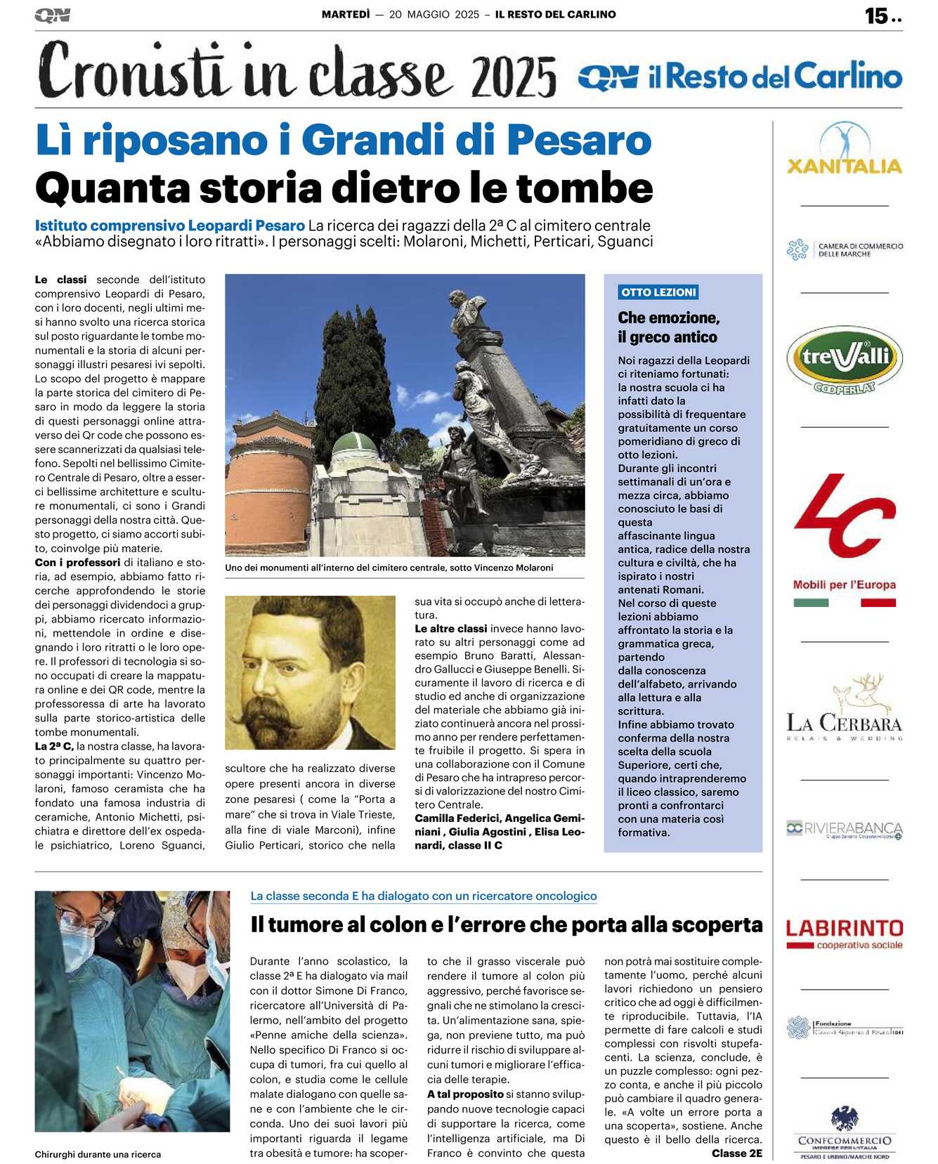 Le classi seconde dell’istituto comprensivo Leopardi di Pesaro, con i loro docenti, negli ultimi mesi hanno svolto una ricerca storica sul posto riguardante le tombe monumentali e la storia di alcuni personaggi illustri pesaresi ivi sepolti.