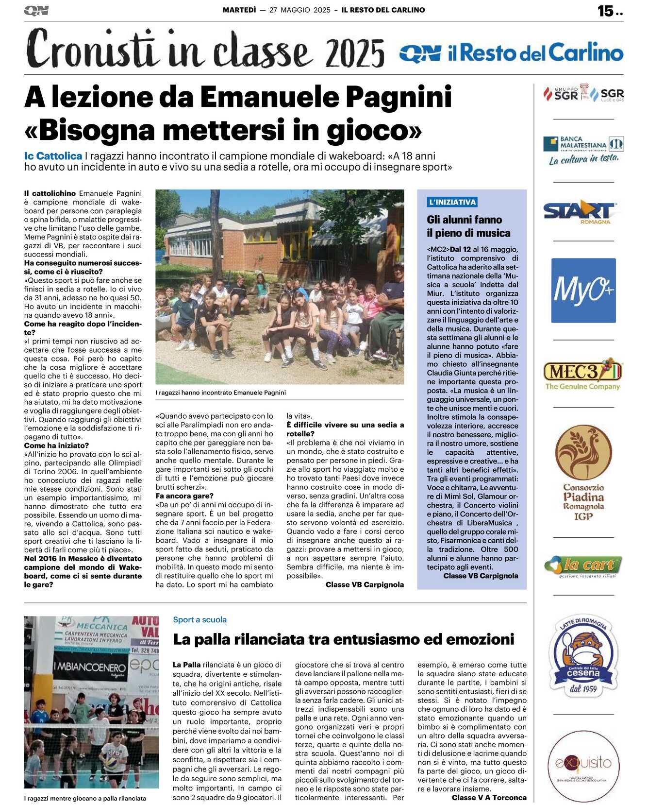 I ragazzi hanno incontrato il campione mondiale di wakeboard: «A 18 anni ho avuto un incidente in auto e vivo su una sedia a rotelle, ora mi occupo di insegnare sport»