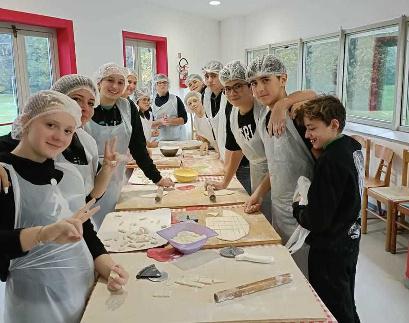 Che bello è stato mettere le “Mani in pasta!” Noi ragazzi siamo stati felici di poterci cimentare nell’esperienza «Mani in pasta» anche se è stata diversa per tutti noi. Per quanto ci riguarda l’esperienza è stata molto positiva, ci siamo divertiti a cucinare con la nostra compagna Emma che è venuta con noi a ogni incontro e ci ha aiutato attivamente, cucinando e aiutandoci a scrivere gli ingredienti.