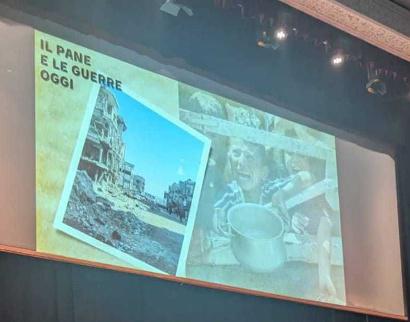 Il primo passo del progetto è stata la visita alla sede del Molino Spadoni, dove noi studenti abbiamo assistito al processo di lavorazione della farina, scoprendo che dietro ogni pagnotta c’è un mondo: una rete di persone, conoscenze e processi. A scuola abbiamo svolto ricerche interdisciplinari sul pane in tempo di guerra, presentandole poi alle classi gemellate per uno scambio verticale. Insieme abbiamo compreso che il pane in guerra non era solo cibo: era resistenza, speranza e ricordo di casa. Grazie al laboratorio con la panificatrice Sara Tamburini dell’azienda Rosole, abbiamo scoperto che il pane nasce dal lievito madre, un organismo che si sviluppa grazie a colonie di batteri. Questo incontro ci ha permesso di trasporre la biologia nella nostra esperienza personale e di riflettere sul nostro ’lievito di crescita’, ossia sulle persone, le esperienze e le emozioni che ci aiutano a maturare, come ad esempio i nostri allenatori che ci insegnano in campo «il segreto dell’umanità», oppure «la paura del futuro» che a volte ci appare come un «vuoto incerto» o la sensazione di aver capito che siamo al mondo per un motivo, per citare alcune delle riflessioni scaturite lungo il percorso.