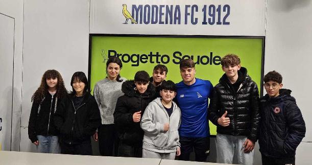 Scuola Galilei di Maranello in visita allo stadio Braglia: il giovane talento ha raccontato il rapporto con i canarini «L’arrivo qui, in serie B, ha segnato il coronamento di un sogno sportivo. Nella squadra ho trovato una famiglia»