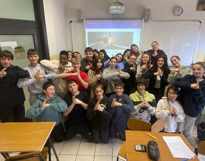 Gli alunni e le alunne della classe 1B dell’istituto secondario di primo grado ’Guido Reni’ in visita in Regione per la mostra dedicata alle vittime dei lager. L’associazione Aned, a scuola, ha raccontato la Resistenza